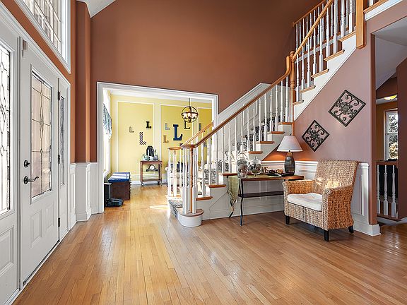 This stunning, custom-built two-story home sits gracefully on a corner lot in the desirable Ashington Meadows subdivision of Frankfort. Boasting 5 bedrooms, a massive bonus room, 4 bathrooms, and a 3-car garage, this property offers a harmonious balance of space, elegance, and practicality within approximately 4.700 sq ft of meticulously designed living space. Step inside to soaring ceilings, gleaming hardwood floors, and an open-concept floor plan that flows effortlessly between rooms. The living room provides a cozy and welcoming space for connections, while the family room, featuring a striking fireplace and scenic backyard views, is perfect for larger gatherings. The centerpiece of the home is the expansive kitchen, equipped with stainless steel appliances, custom cabinetry, granite countertops, and a roomy central island. A formal dining room adds a touch of refinement. Also on the main level is a versatile 5th bedroom, currently serving as an office. Ascending one of two staircases, you'll find 4 generously sized bedrooms, 3 bathrooms, a spacious bonus room, and a convenient laundry room. The primary suite is your personal retreat, offering a large walk-in closet and a spa-like ensuite featuring a whirlpool tub, separate shower, and dual vanities. One secondary bedroom includes its own ensuite while another has semi-private bathroom access from the hallway. The oversized bonus room offers unlimited potential and can adapt to your needs, whether as a playroom, office, gym, or hobby space. The outdoor space is truly an entertainer's dream. Lush landscaping surrounds the in-ground saltwater pool, creating a serene escape for summer relaxation. Equipped with an in-ground sprinkler system, this backyard is also perfect for hosting barbecues and enjoying evenings under the stars. Located in Frankfort, this home provides access to award-winning schools, beautiful parks, and excellent shopping and dining options. Notable updates include:2024: Water heater, pool salt cell, 2021: Dishwasher, microwave, 2020: Upstairs furnace, A/C, 2018: Downstairs furnace, A/C, pool liner, pool cover, 2017: Pool heater, 2016: Pool pump With its thoughtful design, numerous updates, and prime location, this home offers the ultimate in style, convenience, and comfort.