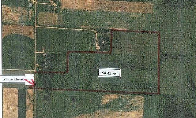 Nice 54 Acres with approximately 5 acres woods and will be 45 acres tillable after pine trees are removed! About 18 acres in corn currently. See aerial photo for approximate boundries.