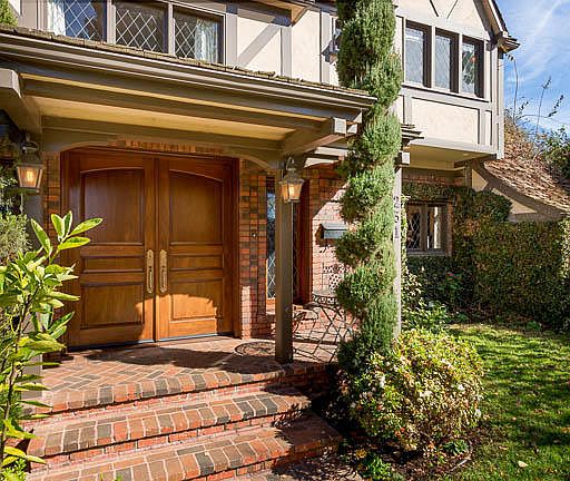 This stunning, two-story English Tudor combines contemporary convenience with Old World charm. Set back from the street, just minutes from the beach, a commanding entryway leads to solid oak double doors. Inside, you'll find polished hardwood floors, paneled walls with artistic molding, coved and exposed beam ceilings, and latticed windows. Four complete bedroom suites grace this home. The master features an ensuite with a marble bathtub and shower, paneled walk-in closet, and a fully-enclosed sunroom for added privacy. Other features include a workout room, an office space, a large living room with a fireplace and sitting room, a powder room, family room and a laundry room. The kitchen's open floorplan is roomy and elegant with its marble countertops and wine storage area, tile floor, and wooden cabinetry. Several rooms open to a back courtyard with doors that fold open for easy access. An attached garage and driveway complete this home offering a beautiful setting close to fine dining, deluxe retail, busy commerce or relaxing by the beach. Offering a great space for entertaining in a quiet residential neighborhood, you can have it all in this beautiful upscale home. Available now!