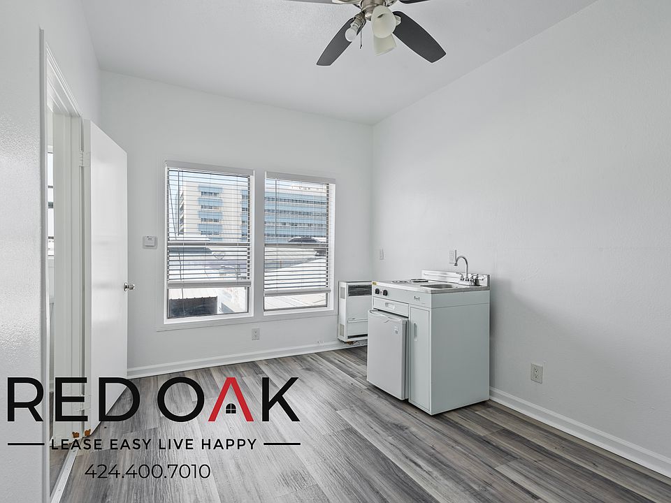 Captivating Sunlit Bachelor with Ceiling Fan, Efficient Kitchenette featuring Mini Refrigerator and Countertop Space, Modern Laminate Flooring, and Convenient On-Site Laundry Available ~ Located in PRIME Los Angeles! Elevate Your Living Experience in this Cozy Haven! Key Features: - Bright and Welcoming: Delight in abundant natural light streaming through large windows with built-in blinds ensuring your comfort and privacy. - All-Season Comfort: Stay cozy with a ceiling fan and reliable gas furnace for optimal temperature control year-round. - Efficient Kitchenette: Enjoy a countertop electric dual burner, stainless steel sink, refrigerator plus a mini-fridge added for more food storage. - Tranquil Bathroom: Indulge in a walk-in shower, a vanity offering ample storage, and a well-lit mirror. - On-Site Laundry Convenience: Easily access on-site laundry facilities for hassle-free cleaning. - Pet-Friendly Atmosphere: Embrace a warm and inclusive environment that welcomes every member of your family. - Secure and Safe: Enjoy enhanced security with gated entry and round-the-clock on-site management support. - Convenient Payment Options: Manage your bills effortlessly with convenient online payment capabilities. - Living in PRIME LA: Conveniently close to USC. Life in this centrally located hub means you are just minutes away from Figueroa Corridor, LA Live, shopping, museums, and more! Don't miss out on the opportunity! Available for an immediate move-in. LEASE TERMS: One Year Lease Pictures and descriptions are of a Model Unit Floor Plan and Details may vary Square Footage is approximate. Street Parking Only. Showings may not be 1-on-1. Listed pricing and special offers are only valid for new residents. Pricing and availability are subject to change at any time. Red Oak does not warrant or represent that image renderings on this website are an accurate representation of every floor plan available at the Property. Floor plans may vary unit by unit and by location at the Property. Please contact the Leasing Office to schedule a tour of the Property and the particular unit you are interested in. Pricing and availability are subject to change at any time.
