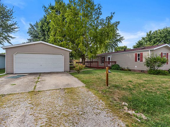 Charming and updated 3 bedroom, 2 bath mobile home in Woods Edge, Urbana with over 1,100 sq ft of comfortable living space. Inside you'll find large living and kitchen areas perfect for gatherings, along with numerous recent updates including a new roof with skylights, new appliances, a beautifully remodeled bathroom, and fresh paint throughout. The inviting deck has been recently repainted and is ideal for relaxing, while the 2-car detached garage provides ample space for both parking and storage needs. Move-in ready and full of thoughtful improvements, this home is a great opportunity!