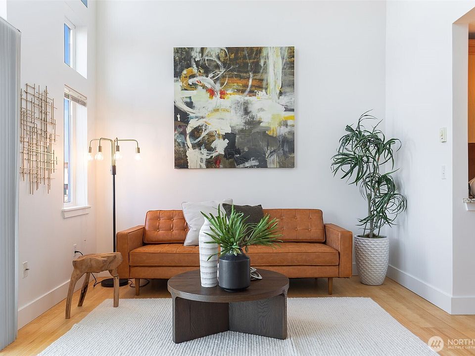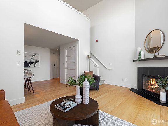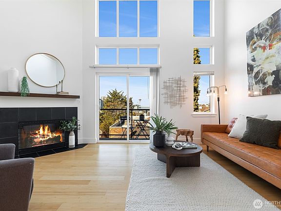 Oh, what a view! Watch sunsets behind the Space Needle and Olympic Mountains from this light-filled, top floor NY-style loft. Enjoy soaring 20 ft ceilings, floor-to-ceiling windows, gleaming bamboo floors, fresh paint, new carpet, and a cozy wood-burning fireplace. The kitchen features granite counters, stainless appliances, and bar seating. Includes three spacious closets, in-unit W/D, balcony, and a flexible second bedroom. Comes with the rare convenience of TWO storage units and TWO parking spots (EV charging available). The building offers a lobby entrance, Amazon lockers, elevator, + outdoor patios with BBQs for entertaining. Pet-friendly w/ no rental cap, and located near the Light Rail and vibrant Capitol Hill shops and restaurants.