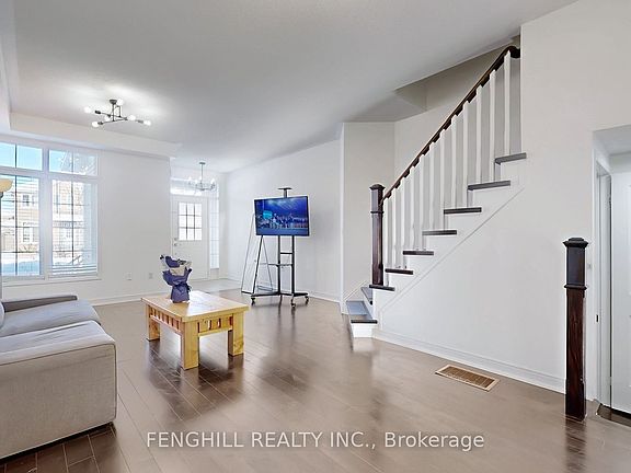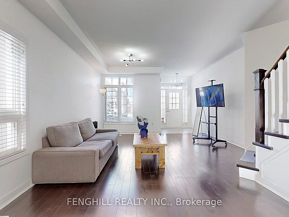 Beautifully updated 4-bed, 3-bath semi-detached home in prestigious Berczy. This bright & spacious layout with 9' ceilings & hardwood on main & upper floors. Enjoy a renovated kitchen and baths with elegant quartz counters, plus upgraded lighting throughout.The third-floor primary suite features a large closet and 3pc ensuite. Step from the kitchen to a patio with lovely landscaping. own hot water tank, lots update Fridge-2023, dishwasher-2023, roof 2022, Property includes a detached garage and a newly interlocked driveway (2024). Located in a top school district, walking distance to Pierre Elliott Trudeau High School, Berczy Park, and transit. Quick access to Hwys 404/407, Angus Glen amenities. A perfect family home combining comfort and modern style.A must-see!