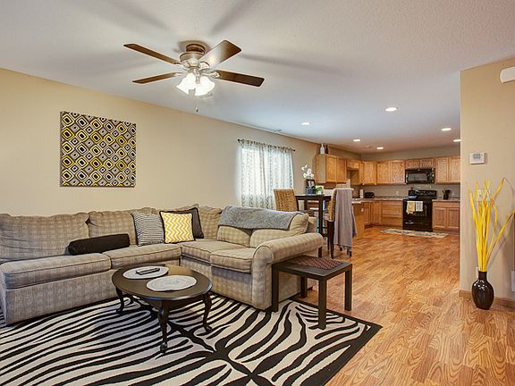 This is a three bedroom upper level townhome with deck. It has a washer and dryer, its own furnace and AC. There are hard wood looking floors on the main floor and carpet upstairs. We are next to Hiniker Pond. We start with a one year lease with automatic extension month to month. Application fee is $50. The water/trash fee is $30/mo. The security deposit is equal to one month's rent. Parking is in the lot and included in the rent.