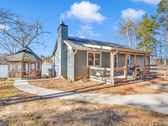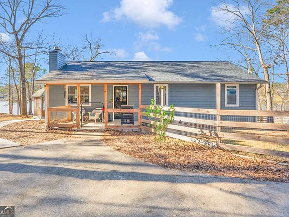 Jackson Lake Waterfront Deal! Lake life reimagined on this 1 acre GA Power lease lot with panoramic views, big deep water, and unforgetable sunsets. Renovated in 2021 with additional upgrades in 2023 including tankless gas water heater, spray foam insulation, all new windows, and LVP flooring, this home is ready. Just bring your swimsuits and boat! Featuring 3 beds, 2 baths, a stunning kitchen with granite countertops and huge island, open living/dining, a sunroom, carport and two garages (one for boats with a wench!). The property gently slopes to the lake with landscaping, irrigation, firepit, swing, boat ramp, and screened gazebo, plus 190+ feet of seawall. Additional documents are uploaded on GAMLS.