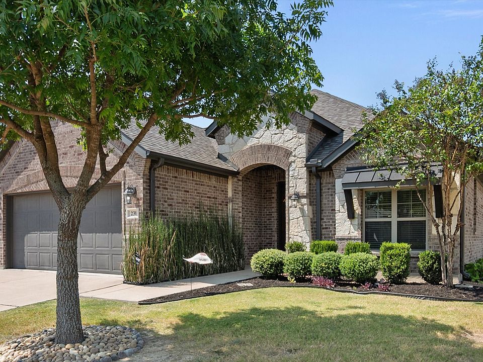 IMMACULATE ONE OWNER HOME. Super nice small stock tank pool with pump and filter in side yard. No carpets! Tiled entry, kitchen, breakfast area and baths. Beautiful luxury wood flooring through out the rest of the house. Large living and eating areas. Spacious kitchen with granite counters, island and corner walk in pantry. Large utility room with space for stand up freezer or refrigerator. Bedrooms offer 3 way split . Crown molding in entry, kitchen, eating area and living. Glass storm back door with pet access. Very large primary bedroom. Primary bath has separate tub and shower plus a double vanity. HUGE primary closet 14 x 9. Corner lot totally landscaped front, side and back. Suncast storage building 8 x 7. Covered patio with bar area and fan. Two additional pergola covered patio areas. Tiled walk ways and nice rock covered flower beds. Roof replaced 2023. Microwave replaced 2024. Half of attic is floored. Stained fence. Security system. Heat pump. Notice the custom built hidden trash and recycle container holder on left of garage.