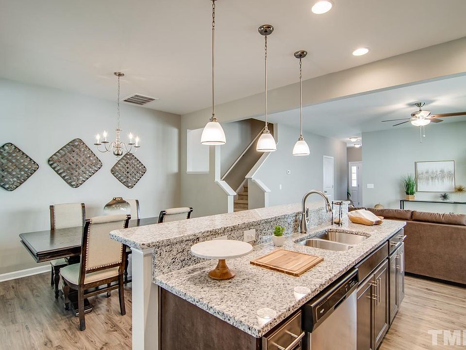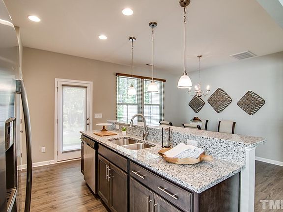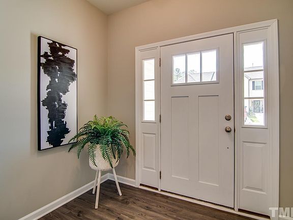 Spectacular spec home in a vibrant community. The welcoming covered porch opens to a light-filled, magazine quality showpiece on a private lot. Open floor plan features gorgeous luxury vinyl plank floors, chef's kitchen, and great attention to detail. Relax in your spacious master suite with sitting area and panoramic view of the woods or venture out and explore the 24-hour fitness club, Olympic length pool or nature trails. Equidistant from Durham and Raleigh. Peaceful living in the perfect location!