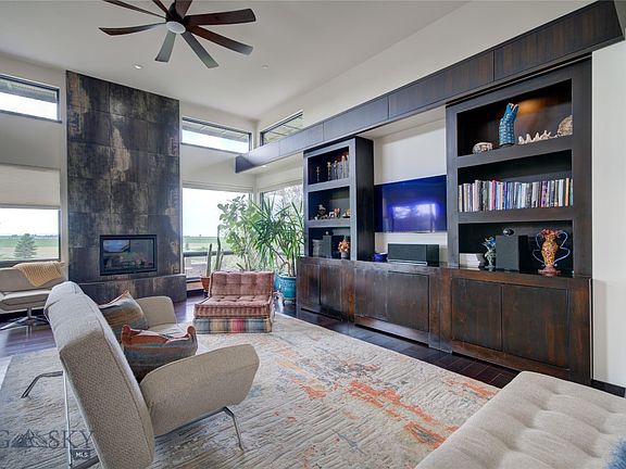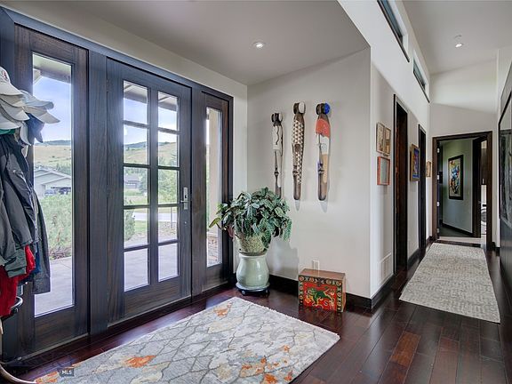Stunning modern home with exceptional views in Greenhills Ranch. Experience the perfect blend of clean lines, modern elegance, and a touch of mid-century charm in this exceptional home, unlike any other. Situated in the desirable Greenhills Ranch community, this residence sits on a spacious one-acre lot, offering access to scenic trails that wind through the neighborhood and connect to nearby communities. Designed to take full advantage of its stunning surroundings, this home boasts breathtaking western views overlooking conserved farmland, ensuring uninterrupted Montana vistas for years to come. The open and light-filled interior with lofty ceilings throughout is an entertainer’s dream, featuring a gourmet kitchen equipped with Miele, Thermador, and Sub-Zero appliances, all complemented by rich Brazilian cherry floors. With a thoughtfully designed layout, this single-level home provides privacy and comfort for residents and guests. The luxurious primary suite on the northern end offers direct access to a fenced backyard, three spacious closets, and a spa-like bathroom with a steam shower. An adjacent office or optional fourth bedroom creates a flexible living space, while two additional bedrooms and a full bath are situated on the opposite side of the home for added privacy. The oversized three-car garage includes a separate office space with backyard access, perfect for remote work or creative pursuits. With ample storage, a carefully curated floor plan, and a distinctive modern design, this home is ideal for those seeking a unique and sophisticated retreat. Built by Kelly Taylor and designed by Jesse Sobrepena, this premier residence invites you to embrace the beauty, functionality, and timeless style of modern Montana living.