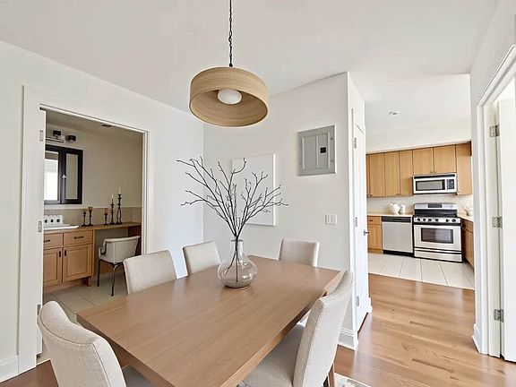 This unit features all updated kitchen, floor, and appliances. There's a dining area or home office area separated from the living room.