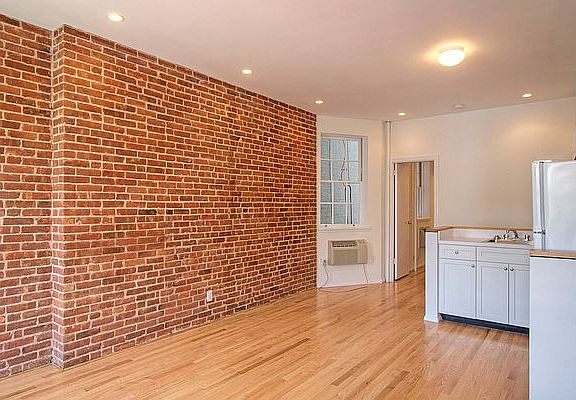 This recently renovated one-bedroom apartment features hardwood floors and exposed brick wall.