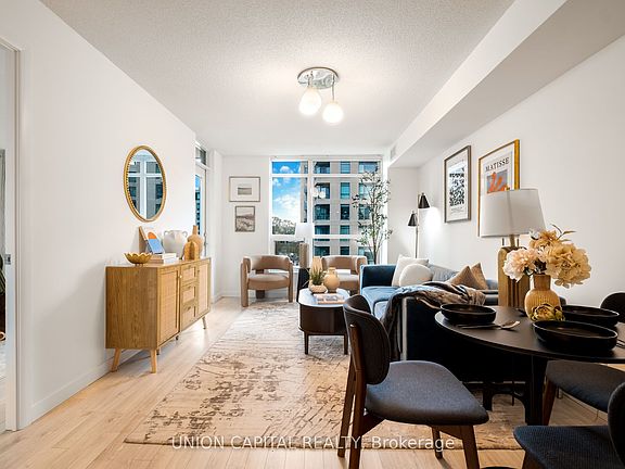 Where history meets modern charm on Fort York! Fantastic location in the heart of downtown steps to the waterfront, parks, TTC, and all city amenities. Bright and spacious 2-bedroom, 2-bath suite featuring approximately 780 sq. ft. of open-concept living space with modern finishes plus a parking spot. Large windows offer plenty of natural light and walk-out to balcony. Stylish and updated kitchen with ample cabinetry, breakfast bar, and plenty of prep space. Primary bedroom with ensuite bath and generous closet space. Impeccably maintained and move-in ready. Building five star amenities include an indoor pool, fitness centre, rooftop garden, sauna, and 24-hour concierge. Perfect for professionals, couples, young families, or investors looking for a prime downtown address at Waterpark city!