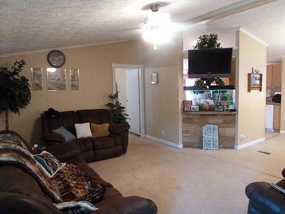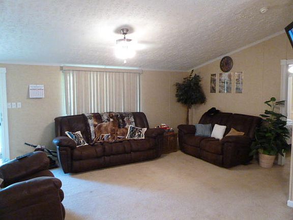 7.5 Acres Private wooded setting. This manufactured home has open floor plan with 3Brs & 2Bas. Features large eat-in kitchen, dining-living rm combo & master suite with shower and garden tub.