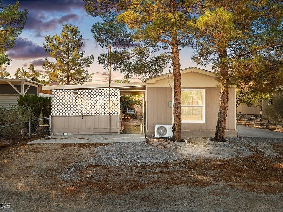 Charming and updated 2-bedroom, 2-bath home in Comstock Park! Enjoy new windows, new flooring, and fresh paint inside and out. A welcoming entry flows through a large, covered patio on the left, with the home’s main entrance to the right. The patio offers shade and privacy, perfect for relaxing or entertaining. Out front, two mature trees provide natural shade and privacy, an invaluable benefit in the Pahrump heat. Additional highlights include a carport, backyard shed, and low maintenance lot. On public utilities with low taxes, this home is part of a community offering a pool, clubhouse, parks, basketball and tennis courts, playgrounds, and walking trails. Move-in ready and thoughtfully refreshed, this home delivers comfort and value in one of Pahrump’s most established neighborhoods.