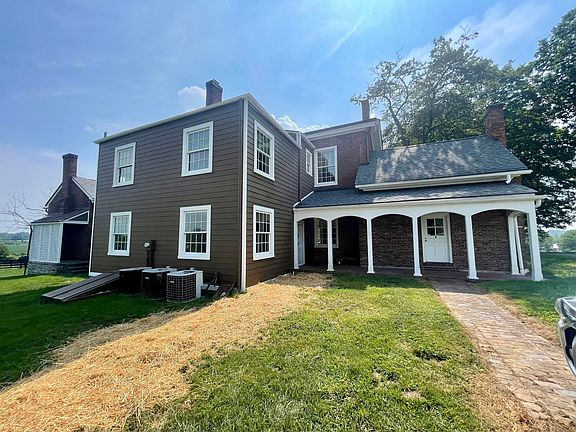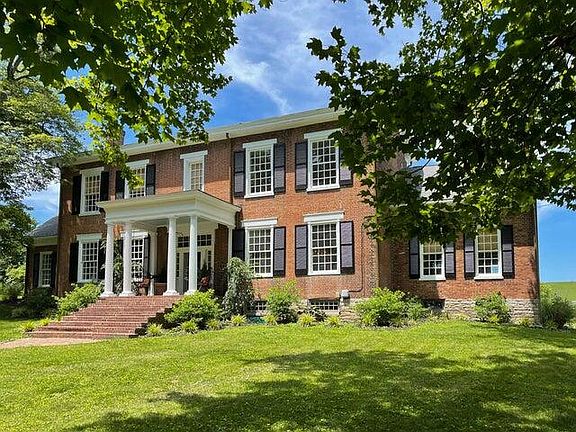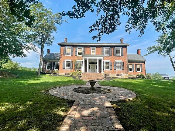 A must see to believe! This Blue Grass Trust historical home on 27 acres has been meticulously maintained and is in excellent condition. Built in 1822 and at that time called the John William Kimbrough House, this beautiful estate was later named Popular Hall Farm. Exquisitely restored while preserving its history. it boasts 14ft ceilings, original hardwood floors, multiple working gas fireplaces, elegant chandeliers and abundant closets. A completely customized kitchen with large island,6-burner gas range, Subzero refrigerator, granite and stainless-steel countertops makes this kitchen a chef's dream. Beautiful foyer, spacious dining room, living room and office with floor to ceiling bookshelves. Three tastefully renovated modern bathrooms accompany five bedrooms. Outstanding natural lighting throughout the house from grand windows afford breathtaking views. New gas and water lines to the road was installed in spring of 2025. Attention to detail is the hallmark of Poplar Hall Farm as the buyer will notice at the first visit. It is also within walking distance to restaurants and shopping in downtown Cynthiana.