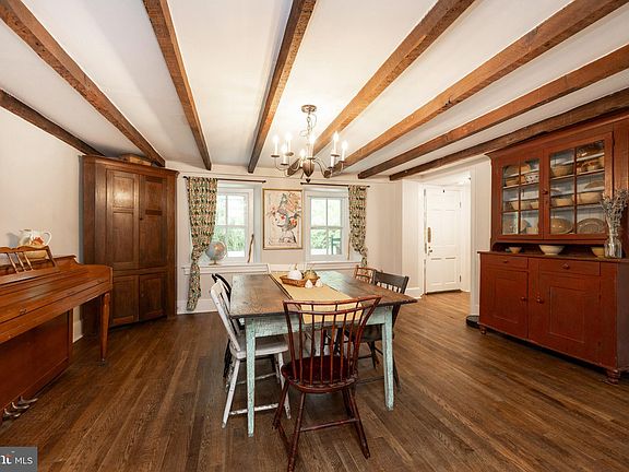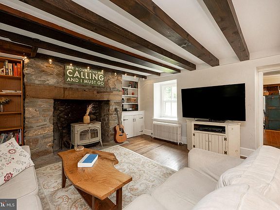Welcome to Two Springs Farms. This is a 4 bedroom 2 full bath home on 3.8 acres. The farmhouse welcomes you through a large front porch, providing a warm and inviting entrance. Inside, the dining and living rooms feature exposed beams and deep windowsills, adding to the farmhouse's rustic charm. The living room boasts an original stone fireplace with a wood stove, perfect for cozy evenings. The kitchen offers real wooden cabinets, a built-in corner cupboard, butcher block countertops, and a newer dishwasher from 2021. A sunroom off the kitchen provides a comfortable space with another wood stove, adding versatility to the property. There is a downstairs bathroom with a shower, conveniently located near the back door, leading to a large deck under mature flowering dogwood trees and large lilac bushes. Upstairs, there is an updated bathroom with a claw foot tub/shower, toilet, and vanity installed in 2020. The main bedroom features two closets and built-in shelves. There are three more nice-sized bedrooms in this home. The boiler was replaced in 2019, ensuring efficient heating for the farmhouse. Rounding out the inside of the home is the walk out basement and attic. Both offer plenty of additional storage and could be converted into additional living spaces. The property includes a historic working spring house with a room that has been partially converted into a 3-season room in 2021. There's also an adjacent stone garden. A large 2-story Chester county bank barn, estimated to be from the 1860s, features 220-volt electric, two extra-large horse stalls, and a separate large storage area on the lower level, and a large space above that was renovated in 2015. This space could have various uses, such as a workshop or entertaining area. There are additional outbuildings along the farm lane, including a run-in shed (part of which is used as a chicken coop), a one-car garage (also used as a run-in for animals), a stone one-story storage/art studio/woodshed, and a storage shed. The property has an Act 319 status, which offers a property tax reduction program for agricultural or open space land. Additionally, the property has permission from the township for keeping two horses or large animals. The property has a rich history of past uses, including chickens, goats, beekeeping, organic farming, and horses, making it suitable for a variety of homesteading and agricultural pursuits. This is a great location. You are just minutes from Rt 322. Rt 30 and Marsh Creek State Park. Overall, Two Springs Farm offers a blend of historic charm and modern amenities, making it an attractive option for those interested in homesteading and rural living.