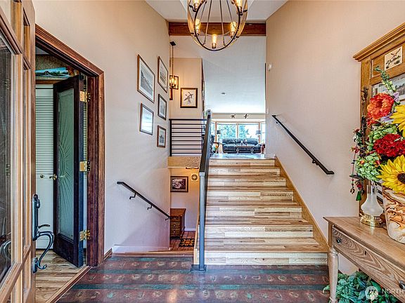 Back on Market at Reduced Price! Beautifully maintained home with unobstructed mountain views. Kitchen is equipped with granite countertops, soft close cabinets and high-end stainless-steel appliances. Hard surface floors run throughout the home. Vaulted ceilings. Primary bedroom offers a luxury ensuite w/large soaking tub and custom tile shower. Deck spans the entire back of home. Lower level has family room, 2nd kitchen with custom wet bar, large bedroom, 2 bathrooms and an office—perfect for a guest suite or potential in-law setup. Covered deck off family room leads into beautifully landscaped and fenced backyard featuring a large patio, outdoor kitchen area, gazebo. Private trail leading to river with access only for this neighborhood.