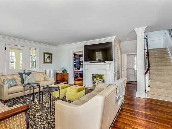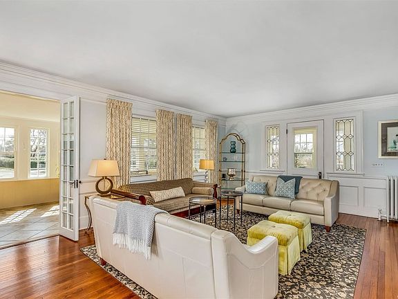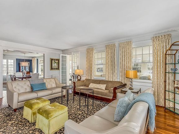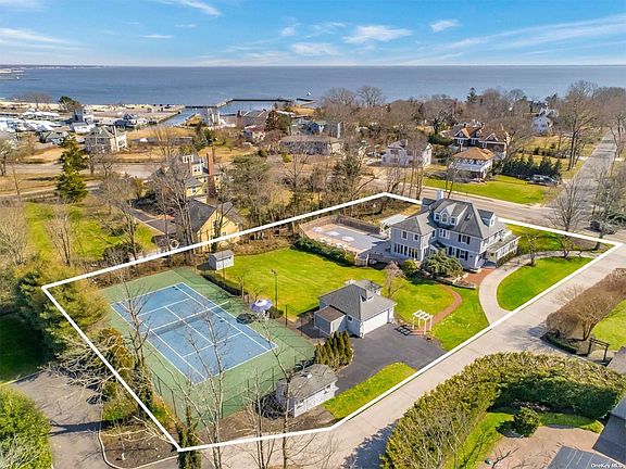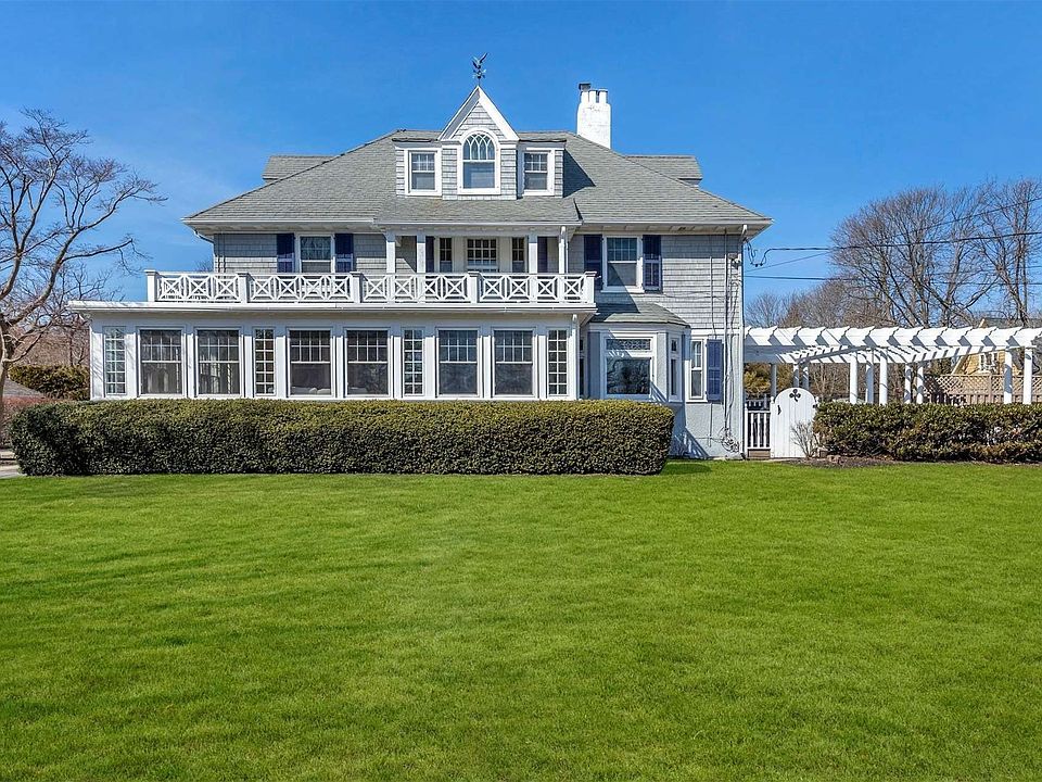One of Blue Points most admired, this impressive classic is a feast for the eyes. Nautical blue shutters, crisp white pergola and soothing grey exterior sets the tone for this graceful home. Brilliant sun shines through the southern exposed enclosed porch illuminating the adjacent living room. The formal dining room with fireplace flows into the homes spectacular kitchen with large eating area. The library, powder & mudroom complete the first floor. Ascend the beautiful staircase to the master suite with private bath; plus 3 additional en suite bedrooms and sitting room. One more flight to the full 3rd floor featuring 2 bedrooms and laundry center with half bath. The lush grounds offer tennis, in ground pool, expansive decking and detached 2-car garage all on a private cul de sac. Steps from Corey Beach; this truly is a lifestyle home.
