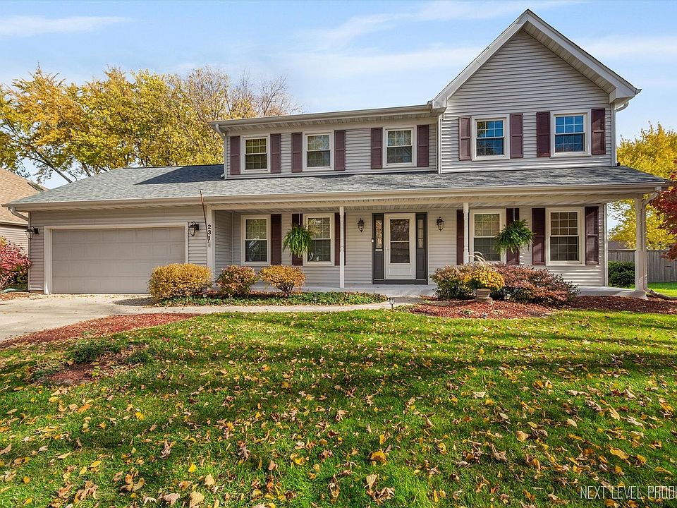 You will love this traditional home conveniently located close to the Randall Road shopping/dining corridor and minutes from downtown Geneva!! Nestled on a quiet, tree-lined street, this spacious home sits on a beautiful lot with a welcoming front porch facing west-perfect for enjoying stunning sunsets. The split foyer leads to formal living and dining rooms...the kitchen features solid surface counters, gorgeous oak hardwood floors, oak cabinetry, and a sunny eating area overlooking the deck and backyard. The cozy family room has a custom brick fireplace and atrium doors that open to a 3 season sunroom with vaulted ceiling, luxury vinyl flooring, and custom 4-panel vinyl windows...the sunroom provides panoramic views of the large, privacy fenced yard, brick paved patio, and multi-level deck with spa!! A convenient main-floor laundry room includes cabinets and a utility sink. The primary suite boasts a soaring vaulted ceiling, a large walk-in closet, and a private en-suite bath with an updated shower/tub, while three generously sized secondary bedrooms and a full hall bath complete the upper level. The finished basement provides even more living space with a large recreation room featuring a built-in dry bar, a 5th bedroom/office, and abundant storage. This wonderful home combines location, space, and comfort-don't wait, it won't last long!