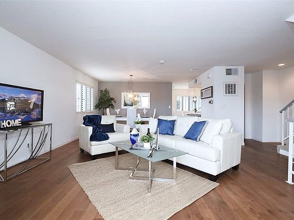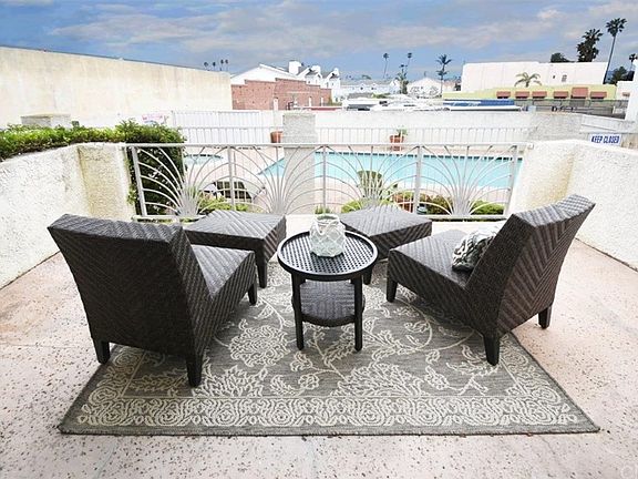 Enjoy resort style living in this lushly landscaped, private beach home with 2 master suites! Located west of Pacific Coast Highway, this sun-drenched residence is in a fabulous location with views of the shared pool. With great ocean breezes, fresh paint, new carpeting, and custom plantation shutters, this home is move-in ready. The main living area has wood floors, a cozy fireplace and sliding doors leading out to a private patio with plenty of room for dining al fresco. A formal dining area is adjacent to a separate built-in entertaining area with sink. The kitchen has an informal breakfast area, crisp white tile, and high-quality appliances. Upstairs, the light and bright first master suite has pitched ceilings, a curved window detail with a built-in window seat, private deck, plenty of closet space and an attached bathroom. The laundry area is discretely tucked behind hallway doors. The second master suite has brand new carpeting and an attached bath with a tub. This home has direct access to a private 2 car garage. This fantastic townhome is close to the beach and many options for dining, shopping, fitness, and entertainment.