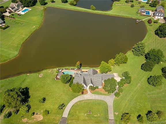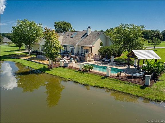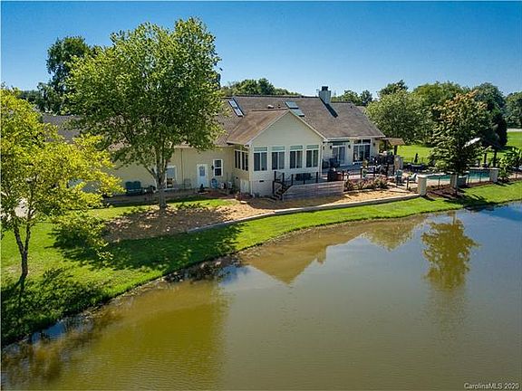 This unique property has so much to offer. Custom Ranch w/bonus. Upon entry the open floorplan w/ views of the water are spectacular and sunsets are stunning.Lake great for fishing. Great room with beams and ledgestone gas fireplace. Dining has custom coffered ceilings. Newly painted kitchen cabinets, oversized island, gas cooktop, double oven and ledgestone backsplash. Skylights. Hardwoods throughout main w/exception of carpet in 2 bedrooms. Split bedroom plan. Master Bedroom with cathedral ceilings, see thru gas log fireplace to free standing tub in bath. Double vanity w/mosaic glassl backsplash. Tiled shower w/2 shower heads. Office/library with custom wood built ins. Shiplap in hallway. Rebuilt sunroom gives you the feel of being right on the water. Outdoor living at it best/gorgeous accent lighting! Salt water pool, commercial gazebo, gas fp and wood firepit. 2nd living area w/separate entrance. NG Generator/tankless hot water heater. Apple/pear trees line property. Must see