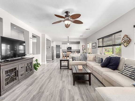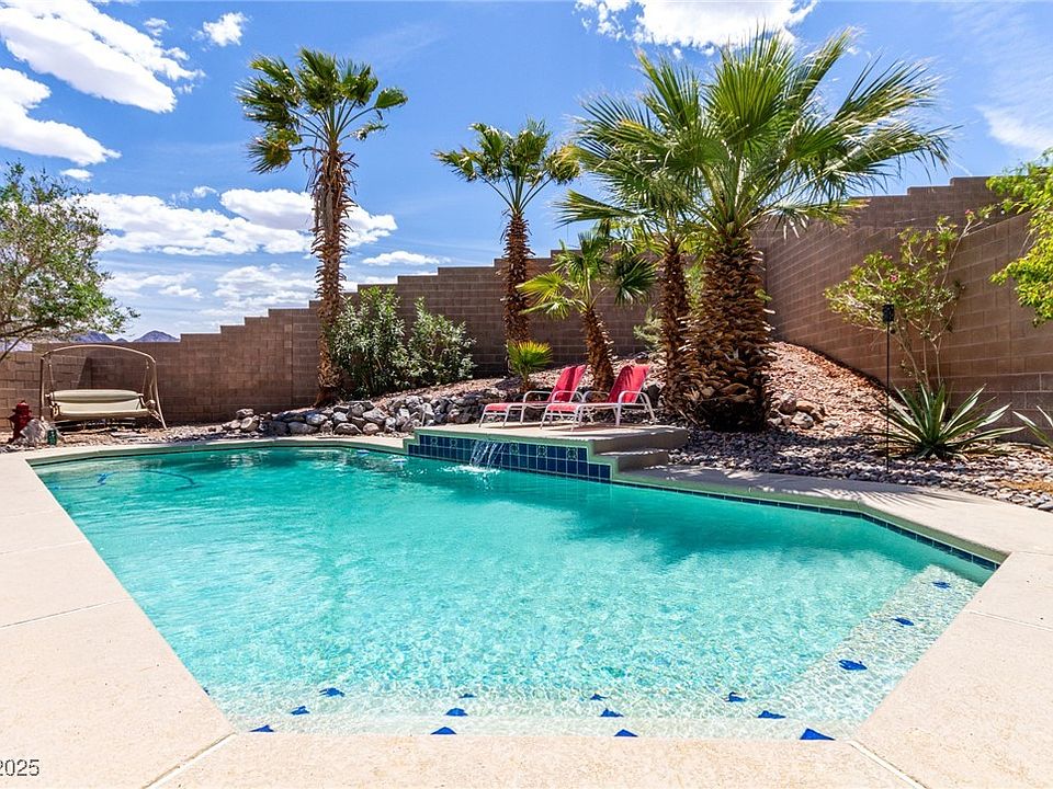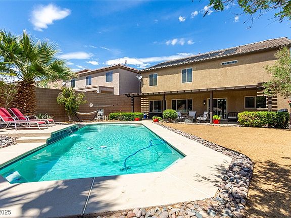 4 Bedroom home with 3 Car Garage, & a Big Backyard with a POOL! Conveniently Located, Top-Rated Schools, Shopping, Restaurants, Parks, & just a short drive to Lake Mead & the Airport! Explore the vast trail system with your favorite ORV, Mountain Bike, or Hiking Shoes! Pulte Home on rare Oversized Lot with Mountain Views! No homes behind you, & Large Sparkling POOL in Your Private Oasis. Options for Sun & Shade w/ Covered Patio w/ surround sound. Fresh interior & exterior paint! New Luxurious vinyl plank flooring downstairs and in bathrooms. HUGE Loft upstairs with TV Mount & Space for Games & Entertaining.New Carpet. Large energy efficient double pane windows to enjoy the Views while staying energy efficient. Walk-in Closets & Ceiling Fans in all 4 Large Bedrooms. Wired for Surround Sound throughout! Kitchen w/ Granite Countertops, Stainless Steel Appliances, walk-in Pantry. 2023 Water softener & water heater.