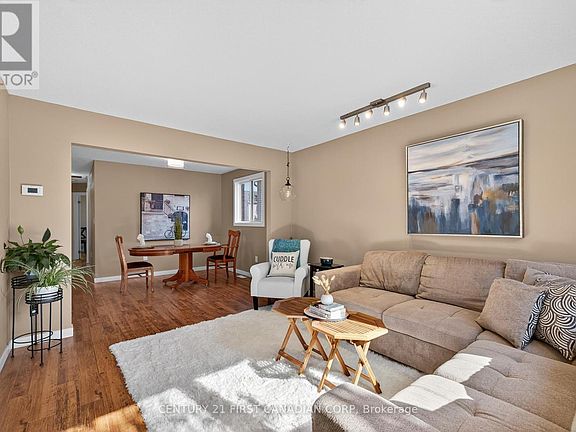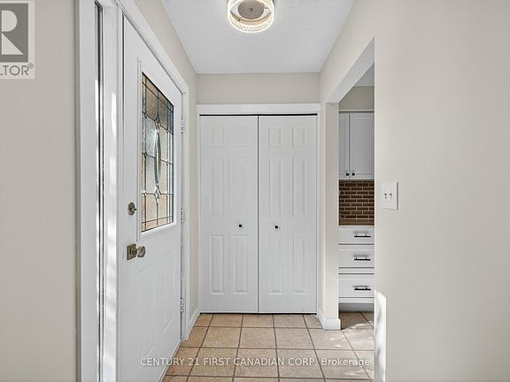 Fabulous brick bungalow on a quiet street in East London. This tastefully updated home is move-in ready and perfect for young families, professionals, and those downsizing. The updated kitchen features new quartz counter-tops with an extra-deep under-mount sink, a new back-splash, and refreshed cabinetry all in 2025. The spacious main floor includes a kitchen/eating area, a bright living/dining room, three generously sized bedrooms, and an updated four-piece bathroom. Downstairs offers a large rec room with newer vinyl plank flooring, an office/flex space, a three-piece bath, and a utility room. The home has been freshly painted throughout and includes a new patio door(2025) from the kitchen to the deck and fully fenced yard, a new garage door(2025), and a new dishwasher(2025). All appliances are included, making this move-in ready and excellent value. (id:41440)