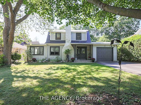 Welcome to 231 Prospect Point Road South in Fort Erie a solid, stylish home bursting with charm and offering a luxurious address in a highly desirable location. This beautiful 1.5-storey property features three bedrooms, two bathrooms, and parking for up to four vehicles, all while being just steps from the waterfront without the high waterfront taxes. Enjoy partial water views and a quiet, peaceful setting surrounded by nature. Inside, the open-concept living space showcases a stone-front gas fireplace, a bright quartz kitchen with newer soft-close cabinetry, and plenty of storage. The main floor bedroom includes a private 3-piece ensuite, while the second-floor primary suite offers garden doors to a flat roof area with endless possibilities. With abundant windows throughout, the home is filled with warm natural light, creating an inviting and uplifting atmosphere in every room. Step outside to a large covered deck off the kitchen, perfect for entertaining or relaxing in privacy. A single-car garage with loft storage and an additional shed provide practical convenience.This home has been meticulously maintained and thoughtfully updated, including a lifetime metal roof, flat roof replacement in 2020, new Lennox furnace in 2020, updated electrical with a 200-amp panel in 2022, new sump pump with battery backup in 2021, hot water tank in 2019, metal basement door in 2020, and basement insulation in 2019. With its combination of charm, functionality, and prime location, this property is truly a rare find. Dont miss your chance to call this exceptional home your own schedule your private showing today and prepare to be impressed.