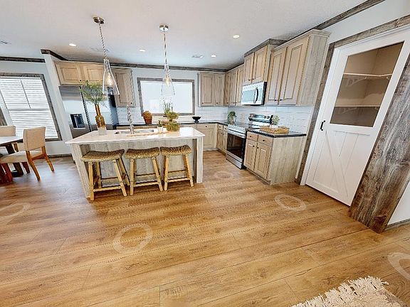 Peaceful acresScenic surroundingsLarge kitchenGenerous islandStainless steel appliancesPrimary suiteAmple cabinet space