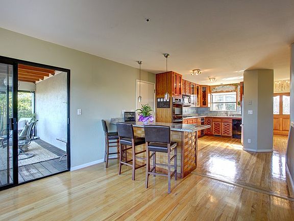 Enjoy magnificent San Francisco skyline, Richardson Bay and surrounding city views from this light and bright 2471 sqft home on an 11,000+ sqft lot. Suited for easy indoor / outdoor living and entertaining this 4 bedroom, 3 bath home with oak hardwood floors throughout is located in the desirable Strawberry area of Mill Valley. The main level has an open plan living, kitchen & dining area with barstool counter seating and an expansive wall of windows to the view. A huge redwood deck with sweeping views, and great for barbecuing, spans the entire length of the home and is adjacent a glass walled atrium with sliding doors ensuring year-round use. There are 3 bedrooms on this level and an additional full guest bath with one bedroom having an en suite bath and sliding door to the deck. On the top floor is a large master suite with walk-in closet, and deck with year-round sunrise and SF views. In addition to the large en suite master bath with views, separate shower, soaking tub, and dual sink vanity, there is additional upstairs living space with cathedral ceilings ideal for a home office or family room. From this level you are treated to views on either side of the home ? views of San Francisco and the Bay on one side and Mount Tamalpais on the other as well as a large roof deck. The home is strolling distance to the Strawberry Point Elementary public school and the Recreation Center. Located Just minutes from the freeway and to SF and even closer to the amenities of the Strawberry Village Shopping area. No Pets Allowed. Available now. Unfurnished. Deposit = 2x monthly rent. Move-in costs: first months rent + deposit. Duration up to six months, give or take. Month to month thereafter, potentially. Utilities not included: Tenant pays PG&E, Water, Garbage, etc. Owner pays for landscaping and grounds upkeep.