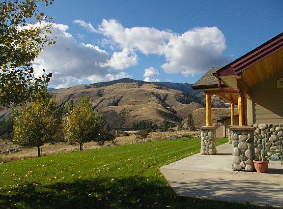 Builder’s own home – only a stone’s throw from the Salmon River! 1,654 square foot newer custom built home with 3 bedrooms, 2.5 baths on 1.3+ acres in the riverfront gated community of Salmon River Estates. This home was designed to take advantage of the natural lighting as well as enjoy the views of the river and surrounding mountains. The home features extensive native Salmon River rockwork inside and out. The main living area of the home has vaulted pine tongue and groove ceilings, an open kitchen and dining area with unique custom hickory cabinets and tile floors. Master bedroom slider gives you access to a private river facing patio. The cozy den with wood burning fireplace could also be a 3rd bedroom. For storing all of your toys there is a 2-car attached garage (completely finished and insulated) as well as a 32’x34’ attached shop with oversized doors for boat and RV parking. On the side of the shop there is also a 34’x12’ covered parking area and storage shed. Low maintenance landscaping includes a 20,000 square foot lawn with underground sprinkler system and irrigation water rights from Joe Creek. The lawn is a low-grow drought resistant Kentucky Blue Grass requiring little attention. There are nice shade trees, unique cactus varieties, and various fruit trees on the property including: apple, pear, peach, plum and cherry. There is plenty of room here to build a greenhouse and create a large garden. The Salmon River Estates community has its own private boat launce right down the street from the house. You will have easy access to prime steelhead and salmon fishing holes! Reasonable CC&R’s here help protect your investment. Too many amenities to list, contact us for a detailed brochure. A rare offering at a great price, do not let this one get away! Owner financing available.