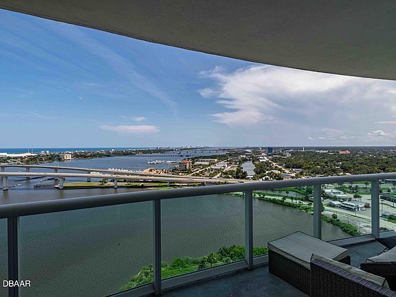 Enjoy the unobstructed Halifax River & Atlantic Ocean views are spectacular from this 21st-floor condominium. An open kitchen that features granite countertops and a breakfast bar. Brand new luxury vinyl installed throughout. The primary bedroom has sliding doors leading to the balcony and his and her closets. Dual sinks, a walk-in shower, and a Jacuzzi tub are all part of the primary bath. The 2nd Bedroom has stunning views and a spacious walk-in closet. Designated covered parking space in the 4-story garage and a storage unit in the Marina Grande. Maintenance fee includes water, high-speed internet, and cable tv. Amenities offer concierge service, a heated pool, a large lap pool, a fitness room, a sauna, a field, a game room, and a library; 24-hour gated entry. Schedule your private showing today!!