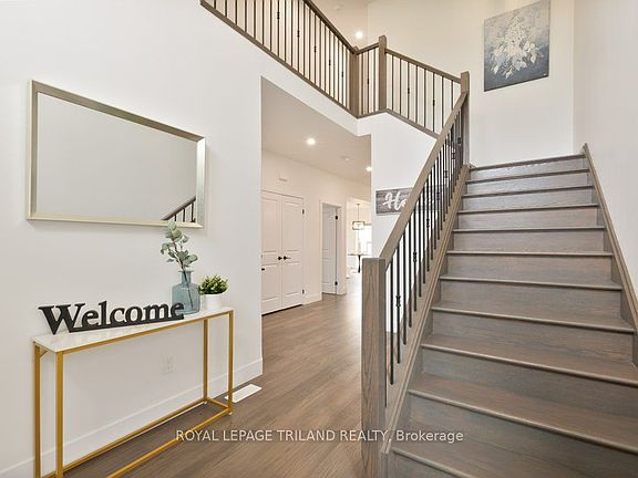 Welcome to the sought-after Longwoods community in London, where family-friendly living meets modern convenience with nearby schools, parks, shopping, dining, and easy highway 401/402 access. This beautiful 3.5-year-young two-storey home offers 2,531 sq. ft. of living space, featuring 4 spacious bedrooms, 3.5 baths (including 3 full on the second level with two of them as ensuite), and a versatile den. The stylish kitchen boasts quartz countertops, an island, backsplash, and gas line connections both in the kitchen and at the patio. Quality finishes include engineered hardwood on the main floor and second-level hallway, tiles in wet areas, and matching vinyl floors in all bedrooms. Additional highlights open to above ceiling height at foyer, tons of natural light, a side entrance to the unfinished basement, 25 pot lights, 200-amp service, rough-in for central vacuum, a double garageand a dual vehicle park concrete driveway. This home blends luxury finishes with practical design, all in a prime location surorounded with all major amenities you need near your living!