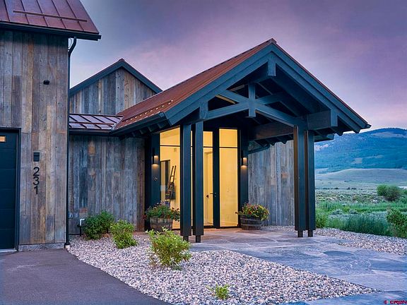 Discover this extraordinary new home by Kasia Karska Design, perfectly situated on the exclusive airstrip of Crested Butte's Buckhorn Ranch, offering unparalleled "fly-in, fly-out" convenience with its 3,000 square foot private airplane hangar. The home spans 5,068 finished square feet, featuring an open floor plan with vaulted ceilings throughout, creating a bright and airy atmosphere. The heart of the home is a custom kitchen with an oversized bar and dining space, perfect for entertaining guests, which seamlessly flows into an impressive living area. The main level also boasts a spacious primary bedroom suite, offering both luxury and privacy with views of Mt. Crested Butte. Upstairs, two additional bedrooms and baths, along with a second living area, are accessed via a striking central-spine steel, wood, and glass staircase, adding to the home's modern design. Premium triple-pane windows, imported from Poland, ensure energy efficiency while framing panoramic mountain views from every room, elevating the home's aesthetic and functionality. Above the 3-car, 952 sqft garage lies a beautifully appointed 1-bedroom, 1-bath accessory dwelling. This private guest space allows visitors to enjoy their own version of luxury, complete with a private living area, kitchen, and laundry. The unit is not deed-restricted and offers flexible rental options, making it ideal for short-term or long-term leasing as the owner desires. Every aspect of this residence exudes luxury and craftsmanship, with custom finishes throughout and an exterior that perfectly blends reclaimed wood, stone, and traditional Shou Sugi Ban Japanese siding. Step outside to enjoy vast mountain views from two outdoor patios, or relax by the custom indoor/outdoor fireplace. The airplane hangar, a rare amenity in the development, also functions as additional space for vehicles, RVs, bikes, or workshop space; the options for your needs are endless! This one-of-a-kind property offers a seamless blend of modern design, stunning views, and mountain lifestyle, setting it apart from anything else in the area. **The furniture in some of the photos has been virtually staged.**