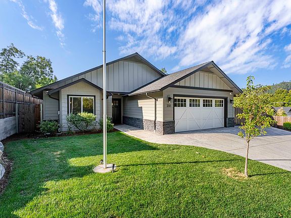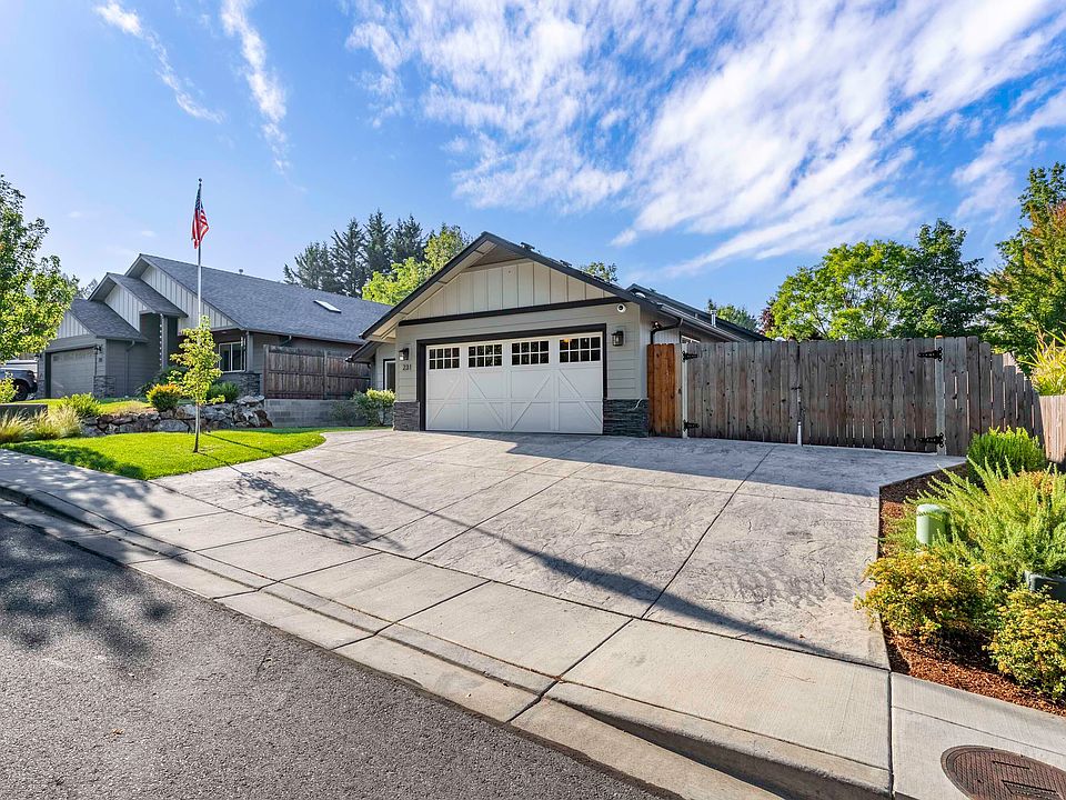 Just a few minutes from Hospital, Grants Pass Golf Course, and shopping, you will find 231 Sand Canyon Lane. The 2021 built home is 1884 sq ft, Single Level, and offers 3 bedrooms & 2 bathrooms. Home features granite counter tops, concrete siding, stainless appliances, gas fireplace with natural stone, superior alder cabinets, food pantry, vaulted ceilings in living and primary bedroom, and RV Parking with dump and electrical hook ups. The backyard is private, well manicured, has room for garden beds, and has a covered concrete patio to lounge and BBQ on. Short cul-de-sac streets, lends to low traffic location. Definitely a home to tour, see the quality and convenience of the home and its location.