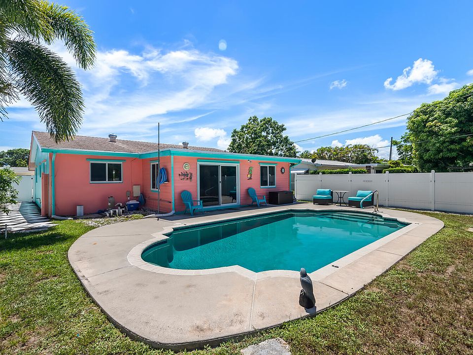 Find everything you're looking for and so much more in this charming home with private pool located in the desirable McDonald Park neighborhood and located just one mile from the beach. Here you'll find a fully renovated home with too many upgrades to mention, including: whole-house impact windows and sliding door (2021), new AC (2021), plus landscaping features, new privacy fencing, pool pump and so much more. (Detailed feature list available upon request.) Incredible outdoor space is a true oasis, built for entertaining, play, and relaxation. Kitchen feature stainless steel appliances, tile backsplash and granite countertops. Fully renovated baths offer added style and beauty. No HOA, so you have all of the options: short-term rental, RV or boat parking, the choice is always yours. New electrical panel and incoming service feed (2020) Landscaping with patio tiles and stone (2021) New hurricane impact windows throughout (2021) New hurricane sliding back door (2021) New air conditioner (2021) Ducts cleaned (2020) New flooring in all bedrooms and dining room (2020) New shower doors (2021) New fence gates (2021) New blinds (2021) New pool pump (2021) New dishwasher (2022) New ceiling fans with lights (2021) Water Heater (2001) Roof (2006) There is also a whole house water filtration system - if desired, can be discussed for negotiation.
