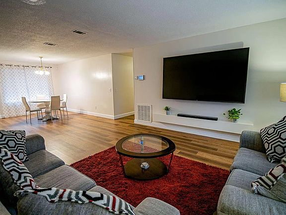 Luxurious bathrooms and a master bedroom with a bath plus, many closets throughout. The attached large 2 car garage and expansive driveway offer convenient parking options, while central air conditioning/heating and ceiling fans with lights keep you comfortable year-round. It also comes with an 85 inch HD TV. Plus, High-speed internet at 2 Gig is available here.