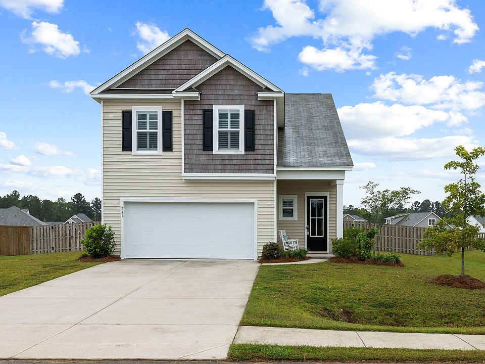 Dual primary suites & tons of flexibility in this 5BR floorplan with a screened porch and fully fenced back yard! Hardwood floors downstairs. Spacious kitchen with center island, gas range, built in microwave, and bar seating. Downstairs bedroom suite has walk-in closet, dual sink vanity, and walk in shower. Upstairs has a large loft, a second owner's suite with walk-in closet, and 2 hall baths for the other 3 guest bedrooms. Plantation blinds throughout. Epoxy sealed garage floor. Home is in excellent condition and move-in ready! French Quarter Creek amenities include a large lake for fishing, dock, community pool, clubhouse, cabana, fire pit, bocce court, dog run, playground and park. Enjoy rural breathing room and still be 20 miles to Isle of Palms and 24 miles to CHS airport.