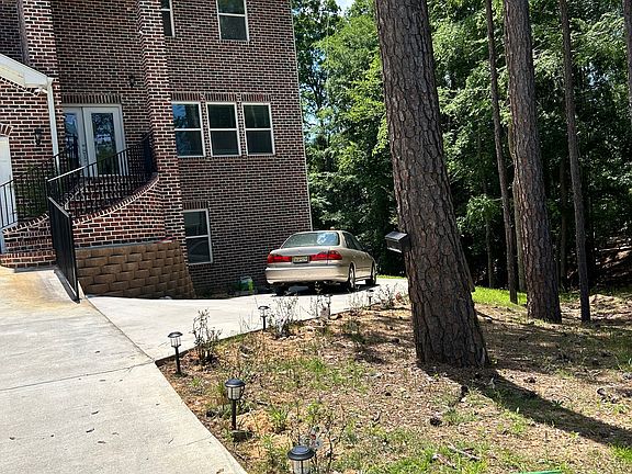 Surrounded by tall pine and oak trees, the property offers an attached deck with gas grill connections for outdoor enjoyment. The main house is securely separated from the basement unit and includes a large driveway and attached garage with high ceilings and an 8 ft high door for large vehicles.
