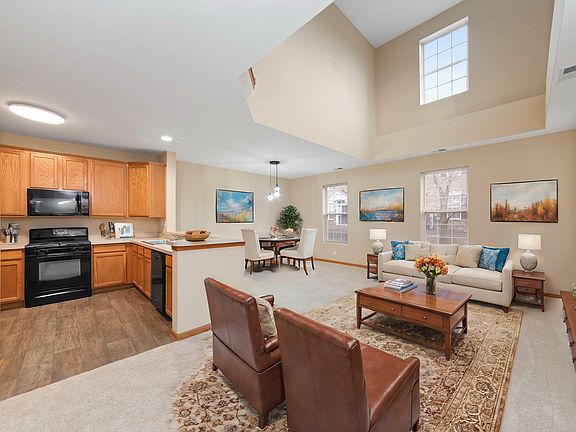 Welcome to your new home in the desirable Springbrook Trails community in Oswego! This charming end-unit townhome offers a serene and private setting with open land alongside it, creating a peaceful retreat. As you step inside, you'll be welcomed by the impressive two-story family room, bathed in natural light and seamlessly connected to the kitchen. The kitchen features ample cabinet space and a convenient breakfast bar, perfect for casual dining or entertaining. Brand-new carpet and luxury vinyl plank flooring add a fresh, modern touch throughout the home.Upstairs, you'll find two generously sized bedrooms, including a luxurious primary suite with a walk-in closet and an en-suite bathroom. The private bath boasts a dual-bowl vanity, a relaxing soaking tub, and a separate walk-in shower. A cozy loft area offers versatile space for a home office, study, or reading nook. The conveniently located second-floor laundry room is a game-changer for everyday ease. An attached two-car garage provides ample parking and storage space. This home's prime location near the Route 34 corridor means you're just minutes away from fantastic shopping, dining, and entertainment options. Plus, it's part of the highly acclaimed 308 school district. Don't miss the chance to call this beautiful townhome your own-schedule a showing today!