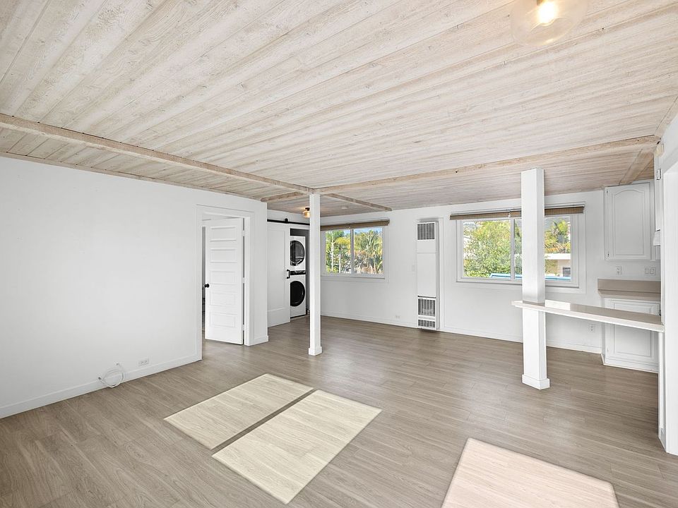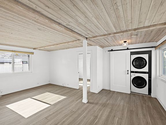 This beautifully updated 2-bedroom, 2-bathroom unit features an open floor plan with wood-style flooring, a rustic tongue-and-groove ceiling, and abundant natural light throughout. The modern kitchen offers sleek countertops, stainless steel appliances, and ample cabinetry, while a convenient stacked washer and dryer is tucked behind a barn door. Both bedrooms are spacious with large closets, and the bathrooms include stylish finishes. There is a private outdoor deck space and a shared balcony. This is a prime location near shops, dining, and the beach, this home offers the perfect blend of comfort and coastal living.