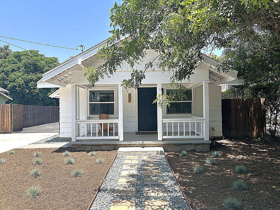 Charming and fully remodeled, this single-story home in San Dimas is now available for rent. Offering 2 bedrooms, 1 bathroom, and 768 square feet of living space, the home features central air and heat for year-round comfort. The property has been beautifully upgraded and includes a nicely landscaped front yard with vibrant plants, a spacious front porch ideal for relaxing, and stunning interior finishes. Inside, you'll find wood flooring, marble countertops, brand-new kitchen cabinets, and stainless steel appliances including a refrigerator, washer, and dryer. The home has been freshly painted and updated with modern fixtures throughout, ceiling fans, energy-efficient double-pane windows, and elegant crown molding. The bathroom has been completely remodeled and now features a custom tile shower, new vanity, updated fixtures, and a stylish barn-style sliding door. The backyard is a good size and includes a storage shed, two dedicated parking spaces, and a third parking spot along the side of the backyard fence. Located near Cataract Avenue and Bonita Avenue in San Dimas. SCHOOL DISTRICT: Bonita Unified UTILITIES: Water is paid by the landlord. Tenant pays all other utilities LANDSCAPING: Tenant billed $60 monthly PET POLLICY: Small pets may be allowed. Submit photos w/applications