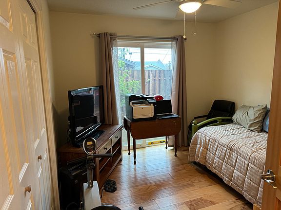 Upscale 2 bedroom, 2 bath duplex with an executive type kitchen, which includes custom cabinets, granite countertops, stainless steel appliances, i.e. dishwasher, refridgerator and gave stove. Kitchen also has a deep sink, pull-out sprayer and garbage disposal. Dining room is large enough for a long table sitting upto 8. The master bedroom is very larage and can accommodate a king size bed along with a large walk-in closet with built-in drawers. Master bedroom and guest bedroom has a door that leads to a private fenced patio. 2nd bathroom has a bathtub and granite counters. Tile and hardwood flooring thoughout. Stack washer/dryer in hallway. Mini-split heatpump supplies A/C and a high BTU gas fireplace provides ample heat in the winter. The oversized single car garage with automatic opener can accommodate a large extended pickup.