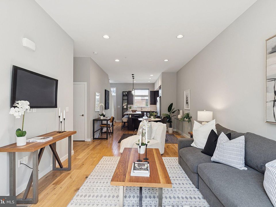 Here’s one you don’t come across every day—a four-bedroom, two-and-a-half-bath home with two-car gated parking right in the heart of Old/South Kensington. It’s the kind of place that gives you space to spread out, but still keeps you close to all the energy of the neighborhood. The first floor has a bright, open flow with hardwood floors, recessed lighting, a convenient powder room and a kitchen that’s built for gathering—complete with a brand-new backsplash, fresh quartz countertops, stainless steel appliances, and a generous island. Upstairs, you’ll find two sizable bedrooms, a sleek hall bath with double vanity, and laundry right where you need it. The primary suite upstairs feels like its own retreat, with a walk-in closet and spa-style bath. A fourth bedroom with floor-to-ceiling windows makes the perfect guest space or home office. Head all the way up to the roof deck and you’ll see why this home is special—expansive views in every direction, perfect for sunsets or summer hangs. Bonus: the newer fiberglass roof deck (installed last year) was just freshly sealed and painted last week. The large finished basement is another perk—great for a media room, gym, or extra storage. Freshly painted from top to bottom, this home feels move-in ready. Out your back door, the secure two-car parking off American Street makes city living that much easier, and the location places you steps from Frankford Avenue and Fishtown favorites including Liberty Kitchen, La Colombe, Wm. Mulherin’s Sons, Frankford Hall, Kalaya, and more. Super walkable to so many local favorite playgrounds and parks including Hancock, Hart, Cruz and Benson - all within a 10 minute stroll. With a sliver of tax abatement remaining, this is a rare opportunity to plant roots in a booming neighborhood with unbeatable convenience and style. (Total amount of tax abatement remaining to be independently verified by Buyer).