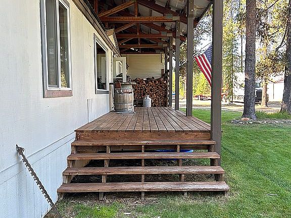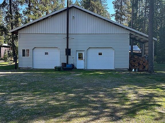 This home sits on two lots (just under 2 acres total) and is surrounded by trees for extra privacy. It has an oversized attached garage heated with a pellet stove, a 24x 40 shop heated by wood stove, and plenty of room for RV or boat parking with sewer, power and water available for hook up. Outdoor fire pits, out-buildings for storage with direct access to the Hiawatha trail. Updated windows and appliances.
