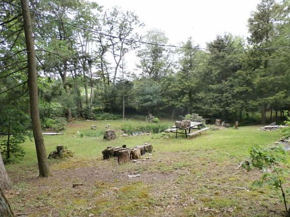 Really unique cottage, would be great for the outdoor nature lover!1.2 secluded acres right across from the state game lands, it has a stream that runs through the property, and would be great for hunting, fishing or just plain relaxing. The property had all new windows installed along with insulation and newer siding. The drain-field has been redone and a new well dug. The great room has a beautiful stone fireplace with built-in storage for your wood, or whatever, and go's completely up to the vaulted ceiling, which has a ceiling fan plus real wood on the walls and ceiling. There is also another stone fireplace in the heated enclosed sunporch. This could be a dream come true for either the nature lover or hunter!