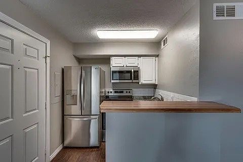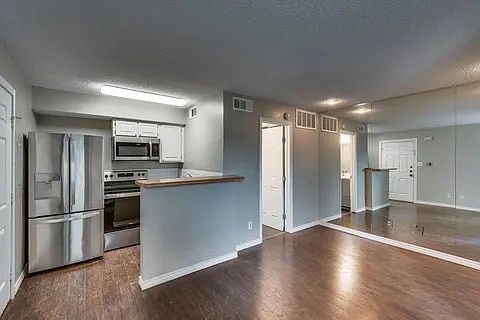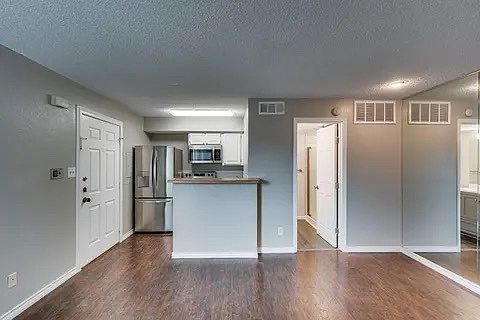 Perfectly located in between I-30 and HWY 360, sits this 1 bedroom 1 bath condo. Located in a gated community, it has assigned parking, steps way from the front door. This rental contains stainless steel appliances, a washer and dryer combo, and an updated bathroom and spacious living room. Community is fully equipped with hot tubs, 2 large pools, tennis courts, a fitness center, and walking trails. This condo is nestled in Arlington's entertainment district, minutes away from dining, shopping, and sporting events.