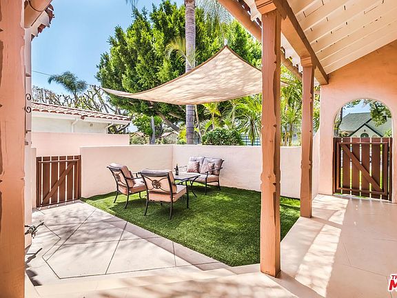 Beautiful classic courtyard Spanish home in great Westwood location. Enchanting foyer leads to formal step down living room with gas fireplace, barreled ceilings and hardwood floors. Spacious formal dining room overlooks the courtyard and opens to a sunlit breakfast room and updated kitchen with granite counters and stainless steel appliances. The family room opens to a charming private patio and lush yard, ideal for special gatherings. The extremely spacious romantic master bedroom also opens to the patio with french doors and has a large walk-in closet. Master bath is bathed in light from a skylight with travertine tiled shower and counters. Special features include central air and a security system. The garage has been upgraded, and can serve as a playroom or accommodate parking. Close to all the Westside has to offer, and located in the much sought after Westwood Charter School district, this exceptional home is a standout!