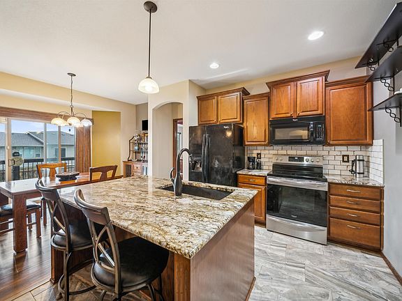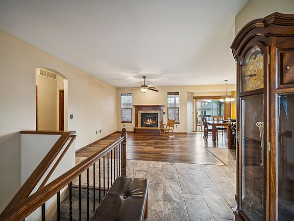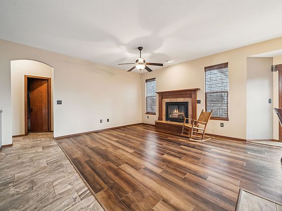 Welcome to this 5-bedroom, 3-bathroom home that offers several upgrades. This original-owner property features an open floor plan with stone flooring in the main walkways and kitchen, complemented by waterproof wood-look luxury vinyl plank flooring. Comfortable living room includes a gas log fireplace. The fully applianced kitchen boasts a granite island, walk-in pantry, and a drop-zone for convenience. The main floor laundry is thoughtfully connected to the master ensuite. The master bedroom features a vaulted ceiling, a master bathroom with a walk-in closet, granite vanity with dual sinks, a jetted corner tub, and a separate shower. Entertainment options abound with a finished view-out basement, rec room with a wet bar, and an expansive outdoor gathering space. Enjoy a privacy-fenced backyard, deck, and a huge patio. Additional amenities include a 3-car garage, an irrigation well, and sprinkler system. This home is perfect for those who appreciate quality, comfort, and style. Don’t miss your chance to own this beautiful property!