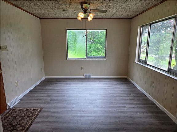 Great home with updated electric entrance 2025, 200 AMPS, new flooring in kitchen/Dining room, refinished hardwood flooring, full house paint, large covered back porch, new kitchen countertop. Basement has 15X10 room with closet that could be a third bedroom. Home has a wood burner. 2 car garage (one is detached).