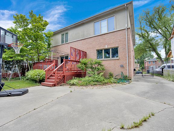 Surrounded by new construction, this lovely home is situated in the award-winning School District 28. Boasting a two-story Foyer that opens up to the Living Room and adorned with plantation shutters and French doors leading into the formal Dining Room. The adjacent Kitchen is designed for entertaining and features maple cabinetry, a plethora of granite counter tops, an island with seating, a built-in wine rack, travertine marble backsplash and stainless appliances and sliders that lead to the large deck and spacious back yard. The Family Room is open to the Kitchen and features a brick surround gas fireplace, enhancing the overall ambiance. The main floor of the house includes a fourth Bedroom with an en suite bathroom, two guest coat closets, built-ins, crown molding, and a Powder Room. The second floor is open and airy, with several notable features. It includes a Master Suite with tray ceilings, two walk-in closets and two double door closets. The Master Suite also has a spacious en suite bathroom with travertine marble flooring, dual vanities, ample cabinet storage, a jacuzzi bathtub, and a stand-up shower with dual shower sprays. Bedrooms Two and Three share a Hall Bath with dual vanities and storage. The basement has a Recreation Room with full bath for additional family living space or additional bedroom. The home offers various other features and amenities, such as a second-floor Laundry, a Loft, sauna, plenty of storage options (including a pull-down attic), a 2-car garage, a concrete driveway and a backup sump pump. Conveniently located just blocks away from the Metra train station, dining options, library, grocery store, shops, parks, and recreational facilities. Recent improvements include: New roof (2020); Refinished basement with full bath (2021); New washer and dryer (2022); Rebuilt deck (2020); New AC unit and Furnace (2022); New water heater (2022); New sump pump (2022)